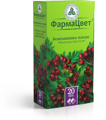 Боярышника плоды - это лекарственное растительное сырье (сушеные ягоды), используемое для лечения сердечно-сосудистых заболеваний. Они оказывают кардиотоническое, спазмолитическое и успокаивающее действие, понижают давление. Применяются при аритмии, гипертонии, стенокардии и для нормализации сердечного ритма. Упаковка - картонные пачки с 20 пакетиками для удобного заваривания.