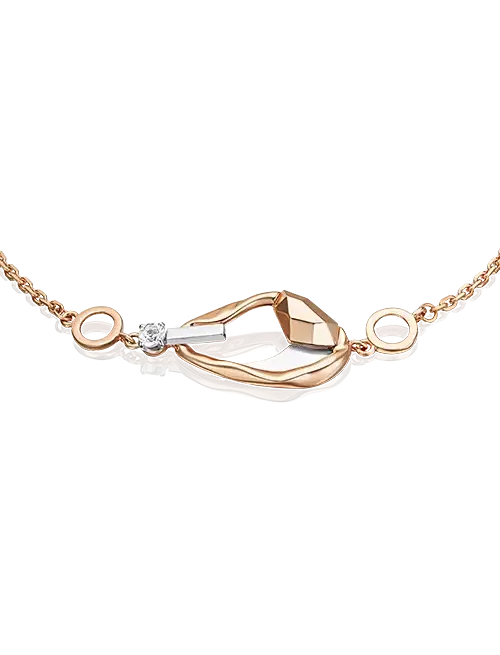 Браслет из комбинированного золота с натуральным топазом white выполнен в стиле геометрия, с эффектной комбинацией геометрических форм в одном силуэте. Браслет инкрустирован натуральным white-топазом, закрепка которого выполнена вручную. Украшение подойдёт для коктейльных мероприятий, а также к деловому и повседневному гардеробу. Материал - красное и белон золото 585 пробы. Вставка - топаз (природный). Средняя масса - 3.39 г. Покрытие - родий. Размер - 16-20 см.