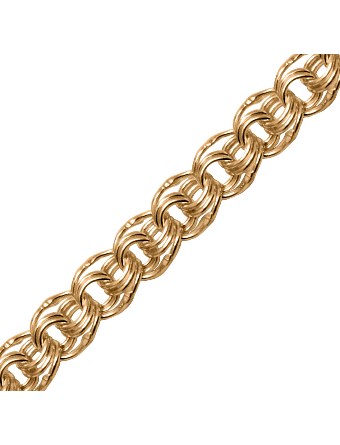 Браслет плетения Двойной бисмарк - это прочное ювелирное изделие, в котором два ряда звеньев плотно переплетены между собой, создавая массивный и объемный вид. Он отличается повышенной надежностью и долговечностью, изготавливается вручную из золота 585 пробы, подчеркивая статус и мужественность владельца. Благодаря двойной фиксации звеньев, такие браслеты устойчивы к деформации и растяжению, подходят для повседневного ношения. Выглядит солидно и презентабельно, считается статусным украшением. Толщина проволоки - 0,7 мм. Золото вес - 0,52 гр/см.