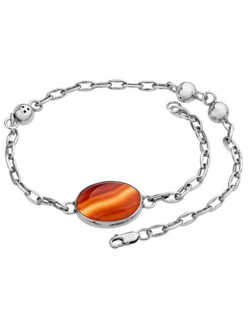 Браслет с сердоликом - это украшение из натурального камня, разновидности халцедона, имеющего теплые оттенки от оранжевого до красно-коричневого. Этот камень считается мощным любовным талисманом, оберегом от негатива, магнитом для привлечения денег и помощником в творческом развитии. Он также символизирует супружеское счастье и верность. Вид металла - серебро 925 пробы. Вставка - сердолик. Размер вставки - овал 18*25 мм. Вес - 24.6 г. Размер - 19,0.
