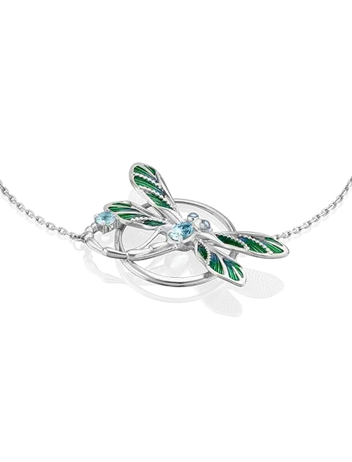 Браслет "Стрекоза" выполнен из серебра 925 пробы с топазами. Дизайн украшения сложный, фантазийный, в стиле анималистика. Декоративная часть браслета выполнена в виде стрекозы с разноцветными крыльями. Дополняют ювелирный образ рисунок эмалью, серебряная зернь и натуральные камни - голубые топазы. Эмалирование и закрепка камней выполнены вручную. Украшение подойдёт в качестве коктейльного, в неформальный гардероб, на каждый для добавления утонченности образу, улучшения настроения и творческого самовыражения. Средняя масса - 4,80 гр.