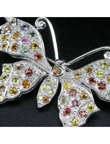 Брошь 4314 - это элитное ювелирное украшение, символизирующее трансформацию, бессмертие души, красоту и легкость. Яркая брошь украшает лацканы жакетов, платья, шарфы, воротники блузок. Она используется как акцентный аксессуар для деловых, вечерних образов или как символичный подарок, приносящий радость и любовь. Основной акцент делается на контрасте: цветные сапфиры (синие, розовые, желтые) создают яркий рисунок крыльев, а бриллианты добавляют роскошное сияние. Вставки: сапфир - натуральный, 10 шт., форма - круг, вес - 0,32 карат; бриллиант - 49 шт., форма - круг, вес - 0,58 карат. Вес - 5,64 гр.