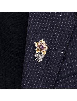 Брошь-игла "Флора" - это изящное ювелирное украшение в виде элементов природы (цветы, ветки, листья), выполненное в форме длинной иглы с фиксатором. Используется для акцентного украшения одежды (лацканы пиджаков, воротники, шарфы, вязаные вещи), добавляя образу женственность, элегантность или деловой стиль. Застежка - длинная тонкая игла (булавка), которая аккуратно проходит сквозь ткань, часто с защитным замком на конце. Подходит как для делового образа (строгие линии), так и для повседневного, добавляя нотку романтики. Высота - 3,5 см, ширина - 2,2 см. Покрытие: золочение, родирование. Вид замка - игла. Вставка - фианит.