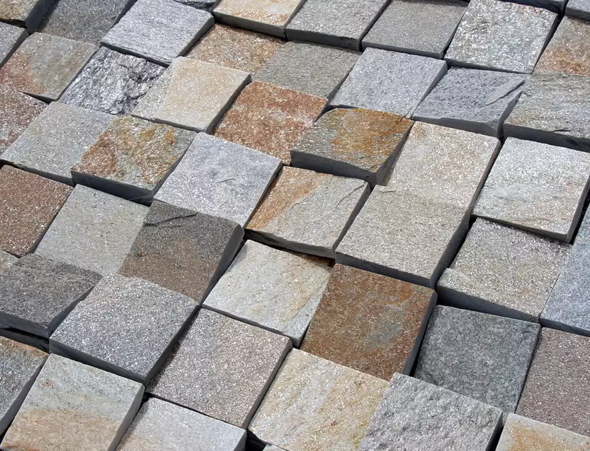Брусчатка из Кварцита- это обработанный камень правильной формы, который применяется для мощения дорожек и ландшафтного дизайна. Брусчатка выдерживает множественные нагрузки, не раскалывается, не истирается, не производит пыли. Брусчатка из Кварцита зарекомендовала себя, как надежный, безопасный и долговечный материал. Цвет природного камня Кварцит находится в цветовой градиенте от серого к жёлтому, а включения слюды придают этому камню неповторимый искристый блеск. Размер брусчатки: 100х100 мм., толщина 20 - 40 мм. Упаковка: мешки биг-бэг, МКР или Паллет борт.