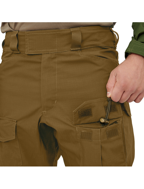 Брюки GC mod.2 Койот Браун в данной модели усовершенствованы практически все элементы модели GC: общий крой, карманы, наколенники, застежки, регулировки. Новые тактические брюки GC Mod.2 стали еще более удобными, функциональными и надежными, чем их предок.В карманы под наколенники могут размещаться как оригинальные наколенники CP, так и их различные реплики. Кроме того, для использования в брюках семейства GC мы разработали систему собственных наколенников Giena Tactics. Наколенники нашей разработки имеют значительно меньший риск вырваться из кармана, по сравнению с другими конструкциями.Появилась возможность использовать дополнительные внутренние наколенники нашего производства под основными. Таким образом, толщину защиты на колене можно довести до толщины 24 мм. Это особенно актуально при использовании тяжелого вооружения или для действий в горной или городской местности.Переработанная конструкция горизонтальной регулировки коленной защиты не пережимает область с обратной стороны колена при сгибе ноги.Введены локальные усиления кордура 1000D в местах наибольшего истирания - по низу брюк вдоль шагового шва и в нижней части кармана под наколенник.В поясе дополнительная регулировка по размеру на резине и велкро.На клапанах карманов, поясе, нижней регулировке объема штанины установлены широкие велкро замки.