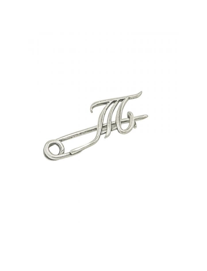 Булавка "Буква Т" - это декоративная брошь-булавка, выполненная в виде первой буквы имени или фамилии. Используется как персонализированный аксессуар, подарок, а также часто позиционируется как стильный оберег от сглаза. Носится на одежде (лацканы, шарфы, шапки), сумках, часто как элемент детского гардероба. Используется как элемент стиля, прикрепляемый к одежде с изнаночной стороны или как видимое украшение. Металл - ювелирный сплав на основе латуни. Покрытие - натуральное покрытие серебром 999 пробы (от 9 до 12 мкм), золотом 875 пробы (0.45 мкм), родием (0.2 мкм).