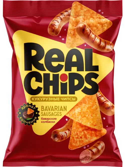 Цельнозерновые чипсы "REAL CHIPS"кукурузные Баварские колбаски