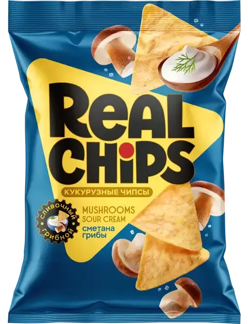 Ароматные, хрустящие, тончайшие чипсы из цельного зерна кукурузы! Мы замачиваем смесь цельных зерен, чтобы активизировать в них питательные вещества, а затем за 7-10 секунд запекаем их под высоким давлением, после чего сбрызгиваем их смесью масла и специй. Хрустящая текстура и яркие, насыщенные вкусы для ваших вечеринок, пикников, а также для уютного вечера с любимым фильмом. REAL CHIPS - насыщенный вкус яркой жизни!