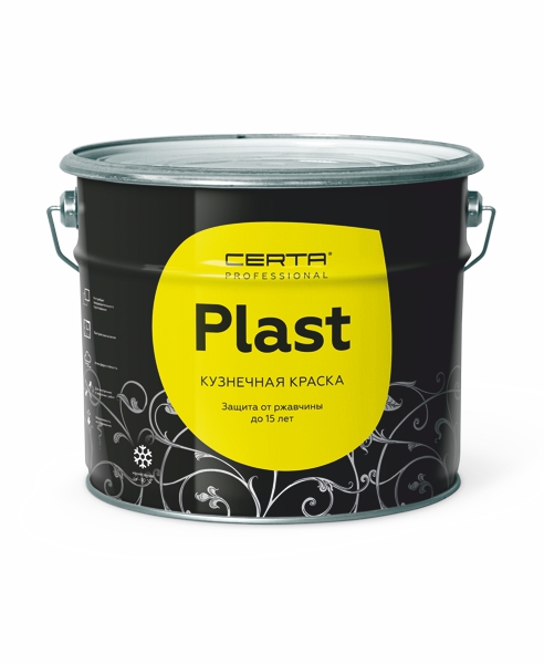 CERTA-PLAST черный (10,0) - это кузнечная антикоррозийная краска черного цвета в банке объемом 10 кг, предназначенная для декоративной отделки и защиты металлических и бетонных поверхностей. Она обеспечивает надежную защиту от ржавчины, устойчива к различным температурам, быстро сохнет и может наноситься даже при низких температурах. Выдерживает высокие температуры и устойчива к выгоранию на солнце. Фасовка - ведро 10кг.