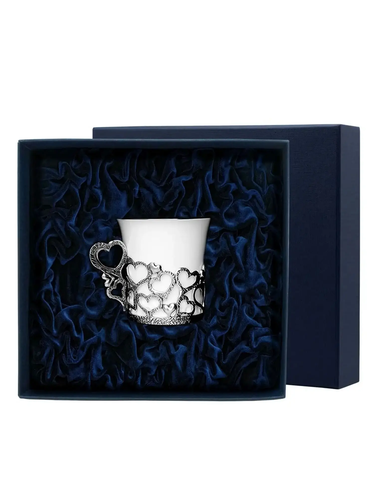 Чашка кофейная "Сердечко" - это чашка ихз эксклюзивной коллекции, в основу дизайна которой легла красота природы, которая в сочетании с многовековыми традициями русских мастеров приобрела новый притягательный смысл, элегантность и завораживающую грацию. Кофейная чашка из тончайшего костяного фарфора в изысканном серебряном обрамлении поражает своей красотой и высокой детализацией. Состав набора: чашка кофейная "Сердечко" - 1шт. (средний вес -37 гр., длина - 55 мм., ширина - 55 мм., высота - 55 мм., диаметр - 55 мм., объём - 70 мл.; футляр - 1шт., длина - 150 мм., ширина - 165 мм., высота - 60 мм. Средний вес - 37 г. Вес набора в футляре - 242 г. Размер футляра - 150*165*60 мм.