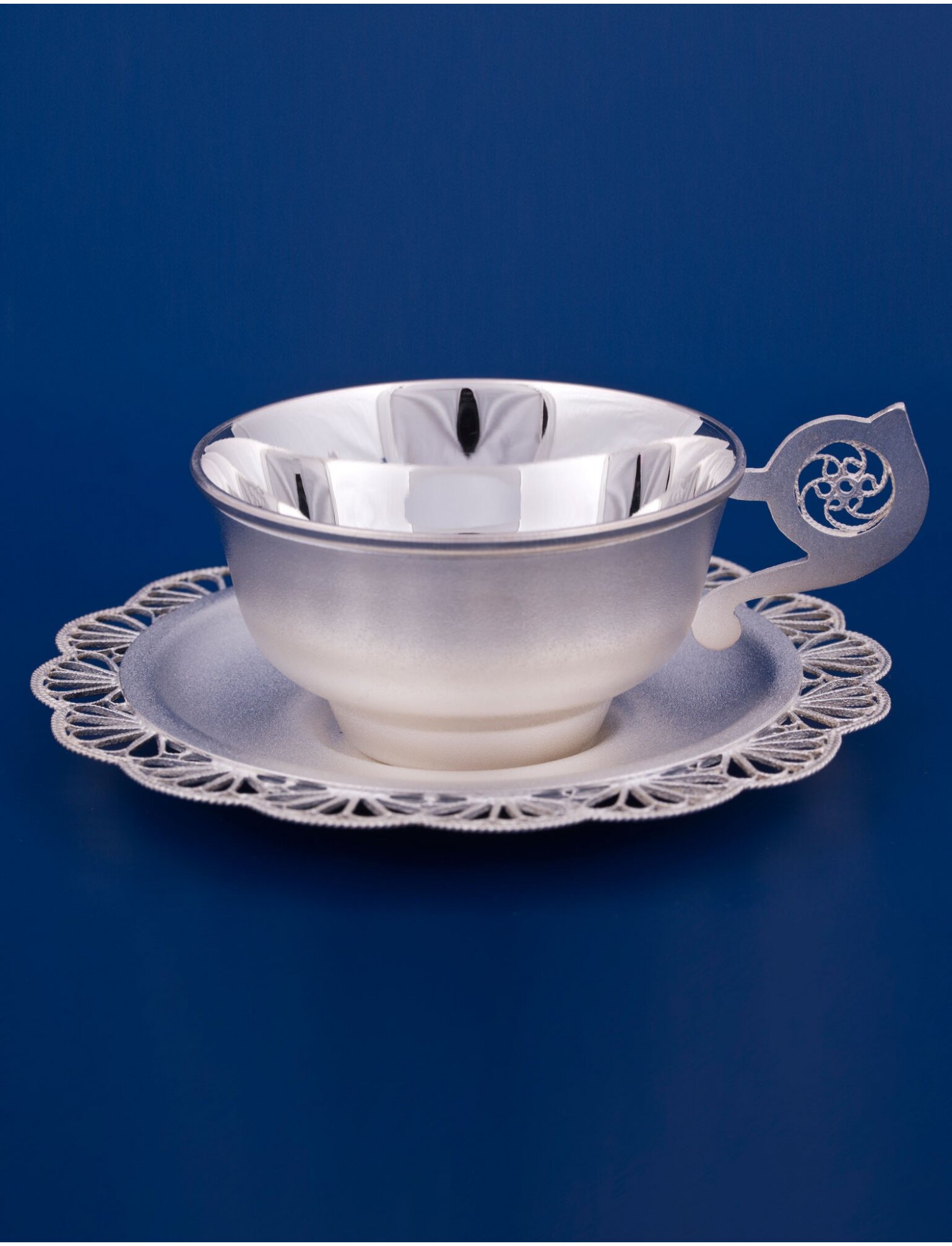 Чашка с блюдцем "Пробуждение" - это классический набор посуды из мельхиора с посеребрением. . Отличается изящным дизайном, часто с растительными орнаментами. Используется для сервировки стола, подчеркивая торжественность момента, и служит отличным подарком. Предназначена для подачи горячих напитков, чаще всего кофе. Часто продается как предмет коллекционирования или как часть столового серебра. Размер - 107*44 мм. Вместимость - 50,0 мл.