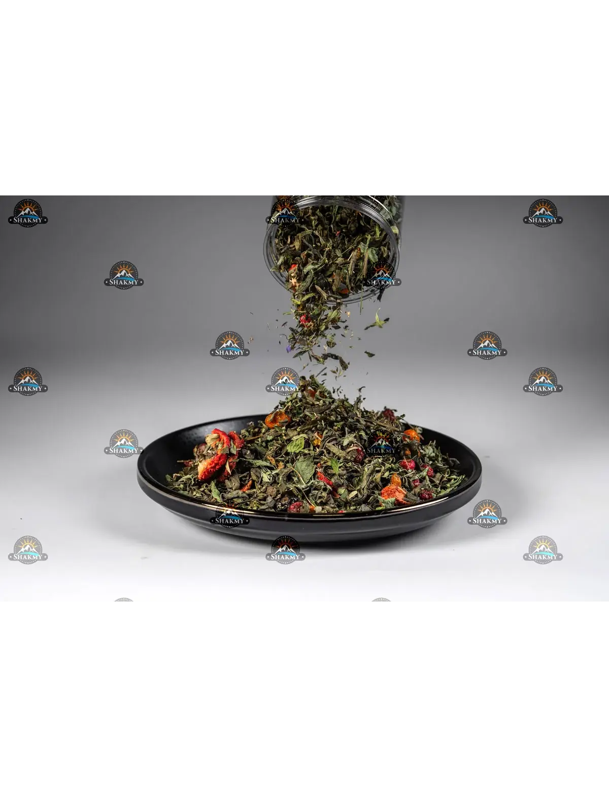 Китайский зеленый чай, красная смородина, клубника, черная смородина, облепиха, мята целый лист, натуральный пищевой ароматизатор.