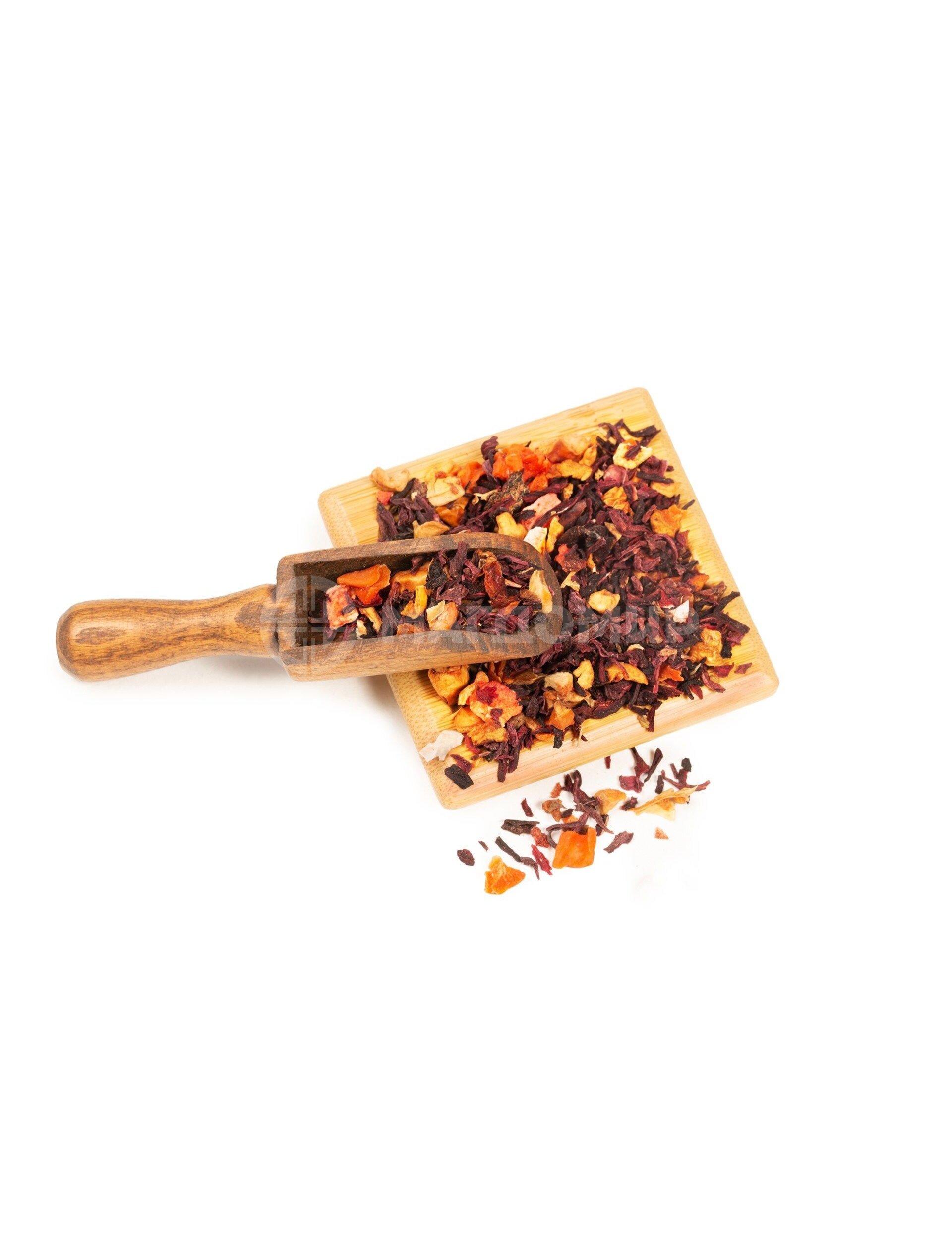 Состав: Суданская роза (гибискус), яблоко, морковь, шиповник, клубника, лимон с цедрой, натуральный ароматизатор.