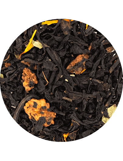 Черный крупнолистовой цейлонский чай с кусочками и листьями садовой клубники, цветками сафлора, дополненный натуральным ароматизатором клубники, карамели и ванили.