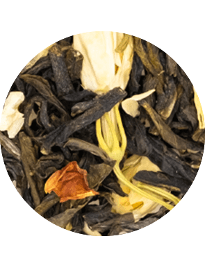 Это зеленый чай, ароматизированный жасмином естественным способом, – добавленный цветок насыщает чайные листья, а затем удаляется. Такая технология помогает цветочной пропитке не заглушать вкус самого чая.