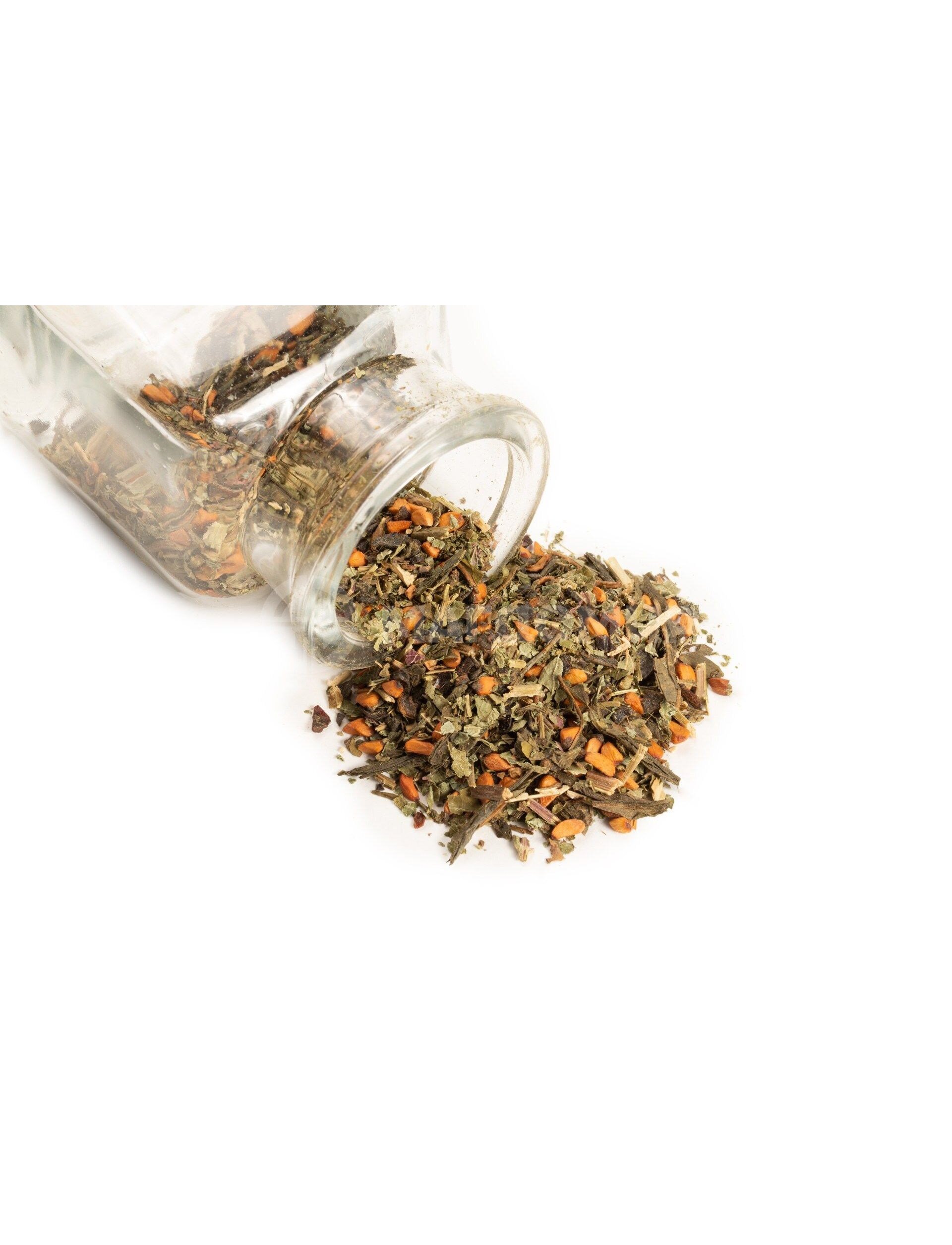 Состав: чай зеленый китайский (Сенча), шиповник, мелисса.