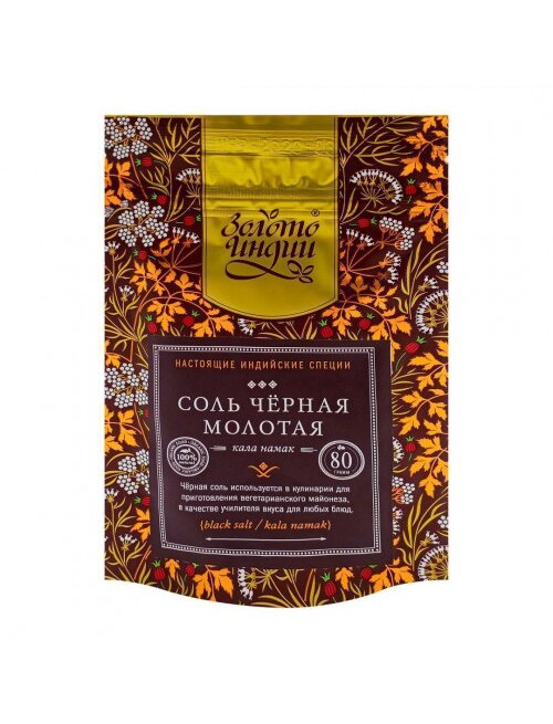 Черная молотая соль родом из предгорий самых высоких горных цепей планеты Земля в Индии и Пакистане. На санскрите название этой соли звучит “кала намак”. Ее добывают в местах с высоким содержанием сероводорода, поэтому вкус и запах этого продукта напоминает круто сваренный яичный желток или соевый соус. Большие глыбы такого минерала имеют темно-красный, бурый или почти черный цвет, но в молотом виде его оттенок колеблется от фиолетового до нежно розового.