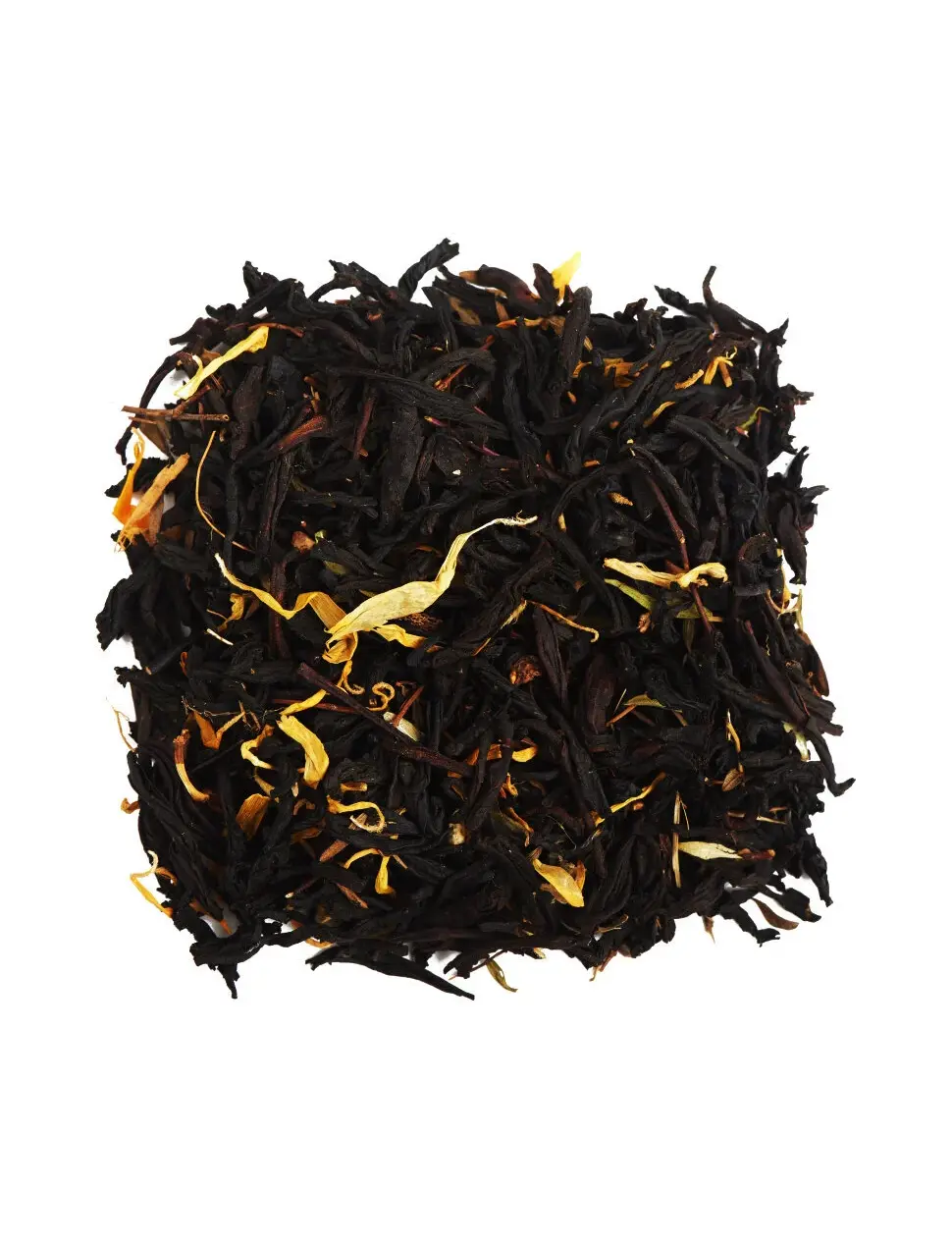 В состав черного ароматизированного чая входят: классические сорта черного чая, чабрец и яркие лепестки календулы.