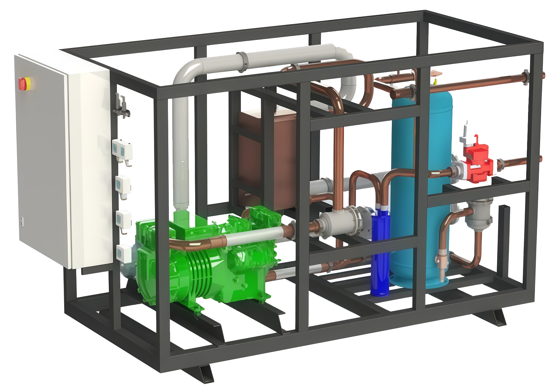 Чиллеры малой и средней мощности с выносными конденсаторами предназначены для охлаждения сред в производственных процессах: охлаждения оборотной воды, охлаждения воды при подаче на пищевых производствах , охлаждения экструдеров и термопластавтоматов, станков, агрессивных сред и т.д. Комплектация данного оборудования: компрессоры с нагревателями картера и запорными вентилями, реле давления сдвоенное на каждый компрессор, ресивер с вентилями на входе и выходе, фильтр на жидкостную магистраль, смотровое стекло на жидкостную магистраль, вентиль шаровый на жидкостную магистраль, теплообменник-испаритель пластинчатый / кожухотрубный, вентиль шаровый на жидкостную магистраль, конденсатор воздушного охлаждения, реле протока жидкости, щит управления, гидроблок (насос, бак, фильтры, вентилиляция).