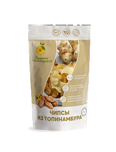 Чипсы – сушеные клубни топинамбура – уникальный источник инулина и 100% растительный продукт без добавления консервантов, ароматизаторов и красителей.