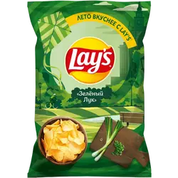 Вкус зеленого лука в сочетании с хрустящими чипсами из натурального картофеля в каждой пачке Лейс.