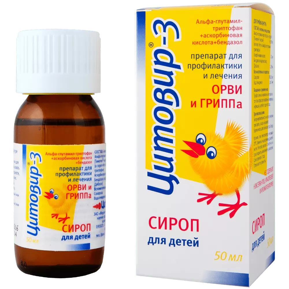 Цитовир-3 детский - это комбинированный противовирусный и иммуномодулирующий препарат, предназначенный для профилактики и лечения ОРВИ и гриппа у детей от 1 года. Он стимулирует собственный иммунитет, сокращает длительность болезни и снижает риск осложнений. Выпускается в виде сиропа (с разными вкусами), порошка для приготовления раствора( без ароматизаторов, апельсиновый).