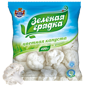 Цветная капуста ЗЕЛЕНАЯ ГРЯДКА замороженная в упаковке без добавок. Чистые, белые соцветия капусты, рассыпчатые, без лишнего льда. Капуста быстро готовится, рекомендуется для диетических блюд и блюд с мясом.