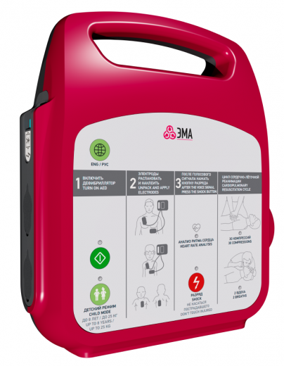 Дефибриллятор ЭМА Пульс 2 автоматически анализирует ЭКГ пациента и выявляет ритм, подлежащий дефибрилляции, а также дает визуальные и голосовые инструкции оператору для проведения сердечно-легочной реанимации. Подтверждение разряда производится нажатием кнопки. Аппарат предназначен для профессионального использования в лечебных учреждениях, машинах скорой помощи, фельдшерско-акушерских пунктах, а также в экстремальных ситуациях: местах проведения спасательных работ, полевых госпиталях. Тип батареи - неперезаряжаемая. Тип электродов - одноразовые взрослые и детские. Форма импульса - бифазный усеченный экспоненциальный с автоматической компенсацией параметров. Режим работы - полуавтоматический.