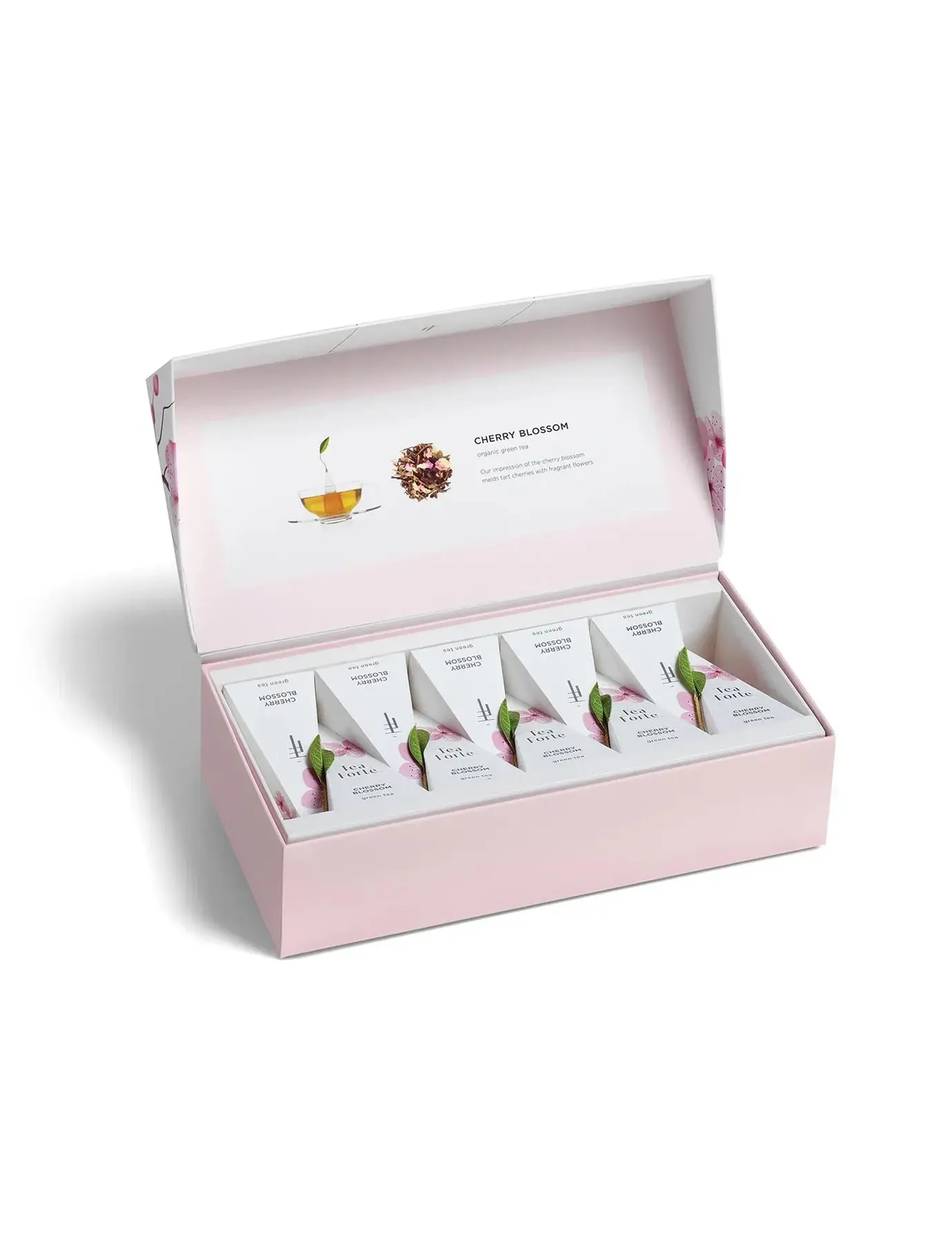 Каждый подарочный набор «Ханами» содержит 10 чайных пирамидок нашего отмеченного наградами чая «Вишнёвый цвет». В нём органично сочетаются терпкость вишни, аромат цветов и зелёный чай.