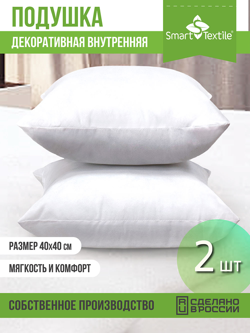 Декоративные подушки внутренние комплект "Лайт" 40х40 см, 2 шт