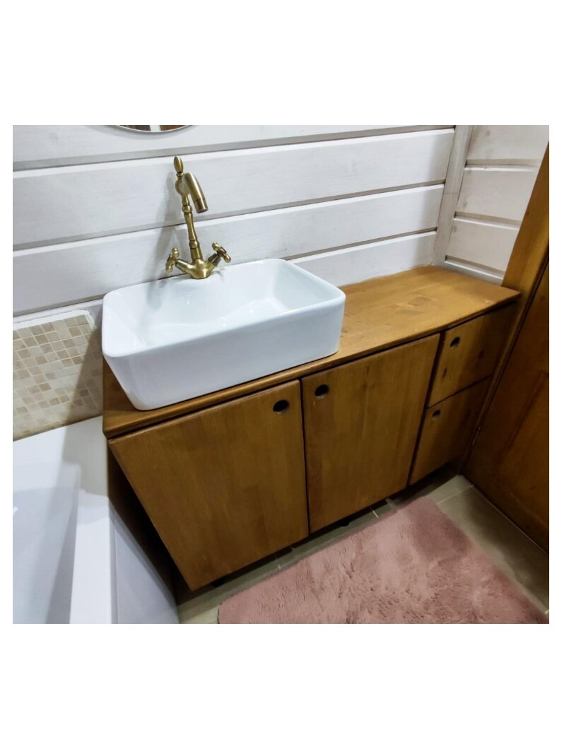 Почему мебель для ванной комнаты лучше всего делать из лиственницы или сосны Сравним с другими материалами? ДЕРЕВО - позволяет делать любую форму или размер для ванной комнаты, легко обновляется или перекрашивается, лиственница не гниёт и не меняет размер от влаги (из неё, кстати, даже корабли строили) ЛДСП - отвалится кромка и набухнет содержимое плиты из которой сделано изделие, долгие годы использования, к сожалению, невозможны МЕТАЛЛ - может покрыть ржавчина и это очень грустно