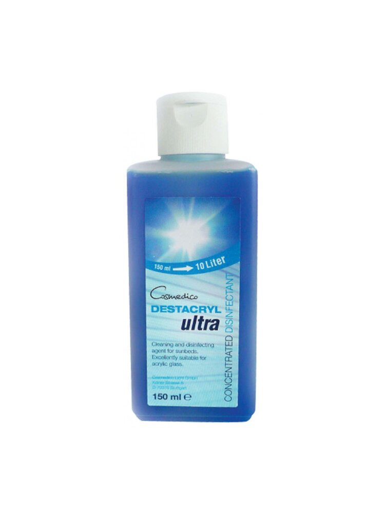 DESTACRYL чистящее средство для стекол - это профессиональный концентрированный дезинфектор и очиститель, разработанный специально для соляриев. Он применяется для быстрой очистки и дезинфекции акриловых стекол, ламп и других поверхностей после загара, удаляя жирные следы косметики, обеспечивая гигиену и оставляя свежий аромат. Объем150 мл данного чистящего средства разводится на 10 литров воды.