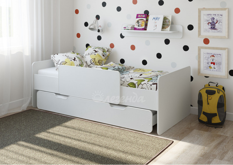 Длина/Ширина/Высота (мм) 1842 × 900 × 600 Спальное место (см.) 180 × 80;160 × 80 Вес (кг .) 60 Объем (M3) 0.164 Кол-во коробов (шт.) 4 Выдвижная кровать - замечательный вариант кровати для двоих детей. Классическая детская выдвижная кровать с бортиком Легенда 14 белая . Выдвижной ярус представлен большим выкатным ящиком, который спроектирован таким образом, что может быть использован и как ящик для хранения вещей, и как отдельное спальное место! Бортики ящика специально сконструированы такой высоты, что легко вмещают в себя матрас, что превращает ящик в полноценное спальное место, которое при необходимости можно спрятать под кровать. Два спальных места: верхнее 1800х800 и нижнее 1600х800 = одна кровать! Отличное решение для площади малых габаритов, экономия пространства. Основное спальное место располагается в 40 см от пола: удобно заправлять кровать, ребенку легко забираться и слезать,надёжно и практично. Нижнее спальное место легко выдвигается и задвигается, ребенок сможет управляться с ним самостоятельно. Для данного ящика использованы усиленные колёса, в составе 6 колёс и 3 тормоза. Благодаря колёсам ящик удобно выкатывается и закатывается, благодаря тормозам ящик остаётся недвижим, например, во время ночного сна. Высокие боковые бортики для дополнительной безопасности спящего на верхней кровати. Приставной борт можно поставить как сзади, так и спереди кровати. Борт по центру кровати не даёт спящему ребенку упасть и в то же время остаётся место по бокам, чтобы слезть и залезть на кроватку. Мягкий противоударный кант – дополнительная безопасность для детей. По Вашему выбору кровать может быть собрана как на левую, так и на правую сторону