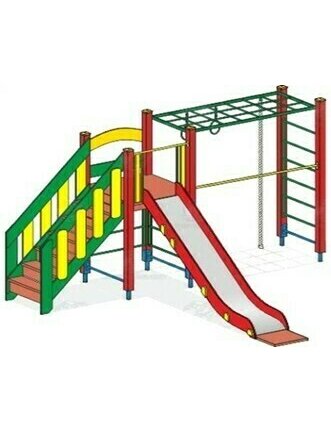Детский игровой комплекс ДИК-2.1.12 - это набор безопасных, специально разработанных элементов, создающих единое пространство для игр, направленное на физическое, умственное и социальное развитие малышей. Он служит для активного отдыха, укрепления здоровья, развития координации, воображения, ловкости и навыков общения со сверстниками на свежем воздухе или в помещении. Материалы: основание труба профильная 60*60 мм., влагостойкая фанера, труба стальная, нержавеющая сталь. Комплектация: подъемна лестница, переходные мостики, смотровая площадка, горка для спуска. Размеры - 3700*3000*2200 мм.