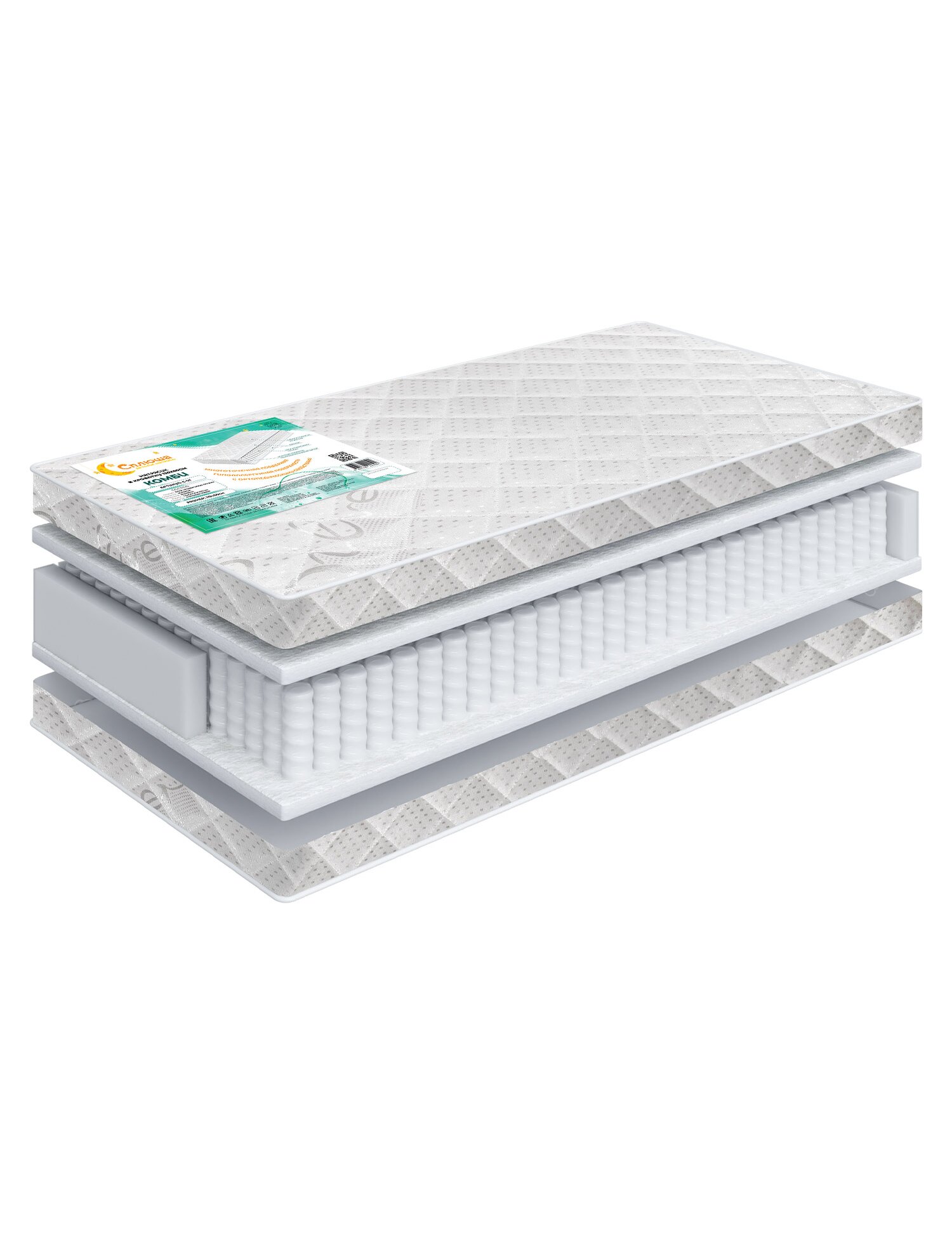 Детский матрасик в кроватку "Комби" - это матрас средней жесткости с превосходным ортопедическим эффектом, который подойдёт для детей до 3 лет. В основе матраса использован блог независимых пружин, которые обеспечат комфортный и здоровый сон новорождённым малышам. Состав матраса: сторона А - холлкон, основа - блок независимых пружин, сторона Б - холлкон. По всему периметру блока независимых пружин матрас усилен плитами ППУ (пенополиуретан). Чехол матраса изготовлен из стёганного трикота. Этот материал отвечает всем требованиям для детских товаров, отлично держит форму, не электризуемся и не тускнеет. Размер - 119х60х14 см.