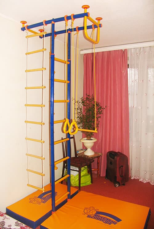 Детский спортивный комплекс "Малыш-2" предназначен для выполнения различных спортивных упражнений, способствующих более полному физическому развитию детей в возрасте от 3,5 лет. Металлическая шведская стенка для детей дают возможность каждому малышу осуществлять тренировку разнообразных групп мышц, и одновременно с этим укреплять собственное здоровье. Данный спортивная стенка универсального варианта тренажер великолепно подходит для создания в комнате ребенка специального домашнего спортзала. Спортивный комплекс может применяться в домашних условиях с высотой потолка от 2,2 до 2,65 метра. Комплектация данного комплекса: шведская стенка, турник, трапеция, гимнастические кольца, лиана, веревочная лестница.