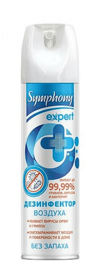 Научно доказана пролонгированная антибактериальная активность дезинфектора Symphony Expert против типичных представителей вирусных инфекций: полиовирусы, норовирусы, аденовирусы, вирусы группы А и В, в том числе против вирусов ГРИППа и простуды. Дезинфектор Symphony Expert устраняет устойчивые бактерии уже через 15 секунд, грибки и плесень – через 7 минут, убивает вирусы на поверхностях через 5 минут, а в воздухе – через 15 минут.