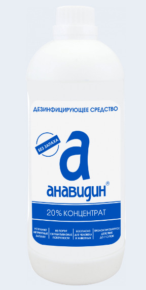 Однокомпонентное дезинфицирующее средство, 20% концентрат. Активно разрушает на поверхностях биологические пленки. По силе антимикробного действия, в особенности, на внутрибольничные штаммы "Анавидин" превосходит многие другие средства. Оказывает подавляющее действие на сальмонеллы, грибы, вирусы.