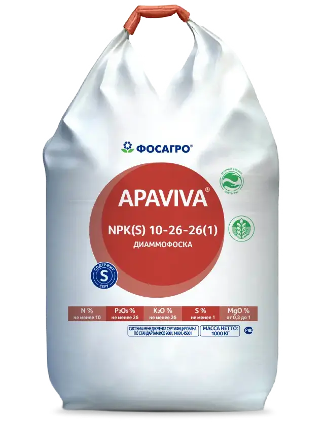 Диаммофоска - это классическое комплексное минеральное удобрение, которое используется в традиционных системах земледелия в качестве основного удобрения как под пропашные культуры с осенней вспашкой, так и под озимые. Его применение особенно выгодно в почвенных зонах с низким содержанием подвижного фосфора и калия, где отзывчивость культурных растений на диаммофоску выше, чем на плодородных почвах. Подходит для следующих культур: сахарная свекла, многолетние травы, кукуруза на зерно, кукуруза на силос, картофель, подсолнечник, соя, рапс. Диаммофоска поставляется в гранулированном виде, упакованная в мешки весом по 50 кг или в биг-беги (большие мешки).