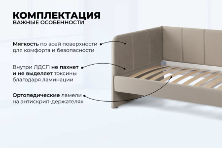Мягкая обивка создает атмосферу уюта. При создании новинки мы использовали ткань Teddy /тедди. Она изготовлена из тщательно отобранных волокон, которые придают ей мягкость и бархатистость. Внешний вид ткани Teddy поражает своей глубиной и насыщенностью цвета. Этот материал обладает высокой прочностью и устойчивостью к истиранию, сохраняя свой первозданный вид даже после многочисленных стирок.