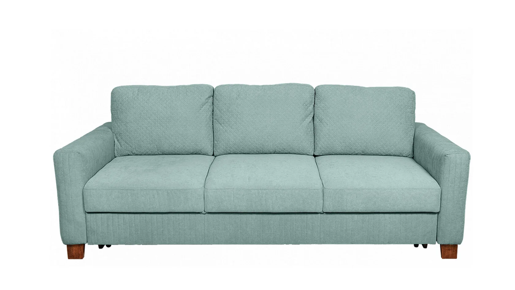 Тип: Прямой Механизм: Дельфин Короб: нет Опоры: 10 см Ножки: Деревянные, 4 цвета на выбор Гарантия: 24 месяца Цена: Указана в 4ой категории ткани Описание Механизм Наполнение Варианты комплектации Эта модель в первую очередь привлекает своей простотой, она с легкостью внесет гармонию даже в очень активный интерьер и способствует расставлению акцентов в виде декоративных подушек, пледов или шкурок. В основе прочный каркас из соснового бруска. В наполнении дивана - высокоэластичный пенополиуретан с блоком независимых пружин, укрепленный металлическими пружинными змейками и мебельными ремнями. Они распределяют нагрузку, защищая наполнение от деформации. Подушки всегда держат форму, благодаря специальной технологии наполнения, съемные чехлы у подушек предоставляют возможность легкой чистки. Наполнение подушек: мягчайший, гипоаллергенный синтепух Eslon и нарезной пенополиуретан создают улучшенную мягкость. Надежный и простой механизм "Дельфин" подходит для ежедневного использования. Под основанием дивана предусмотрен ограничитель, который фиксирует выкатную платформу в нужном положении и не позволяет ей выскакивать. Колеса выкатной платформы механизма прорезиненные, безопасные для напольного покрытия. С торцевых сторон у модулей вставки из искусственной кожи, которые исключают трение материала между модулями, это способствует сохранению ворса и облегчает открывание коробов.