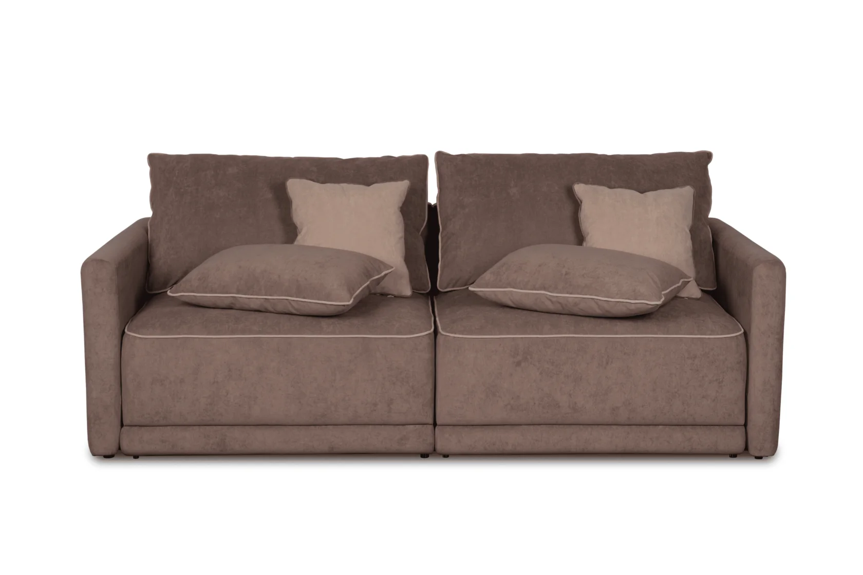 Тип: Прямой Механизм: Тик-так Короб: из ЛДСП, нагрузка до 90 кг Декоративные подушки: В комплекте 2 подушки 49*69 см Гарантия: 60 месяцев Цена: Указана в 4ой категории ткани Модель с прямыми формами, плавными переходами линий и заостренными уголками на подушках отлично дополнит современность интерьера. Это диван, который составляется из модулей от 2,16м до 7м и более, в прямом варианте, угловом и П-образном, поэтому можно его максимально подстроить под размеры помещения. Технология гибкого основания позволяет дивану с успехом заменить ортопедическую кровать для полноценного отдыха и сна В наполнении пенополиуретан и сэндвич из разных видов пружин, что обеспечивает анатомическую поддержку при отдыхе сидя или лежа У модели - два вида боковин: обычная и боковина-пуф, все модули универсальные Каждый модуль декорирован кантом, его можно изготовить в тон или контраст Подушки всегда держат форму, благодаря специальной технологии наполнения Равноценное наполнение в сиденье и опускающейся спинки обеспечивает комфортный сон