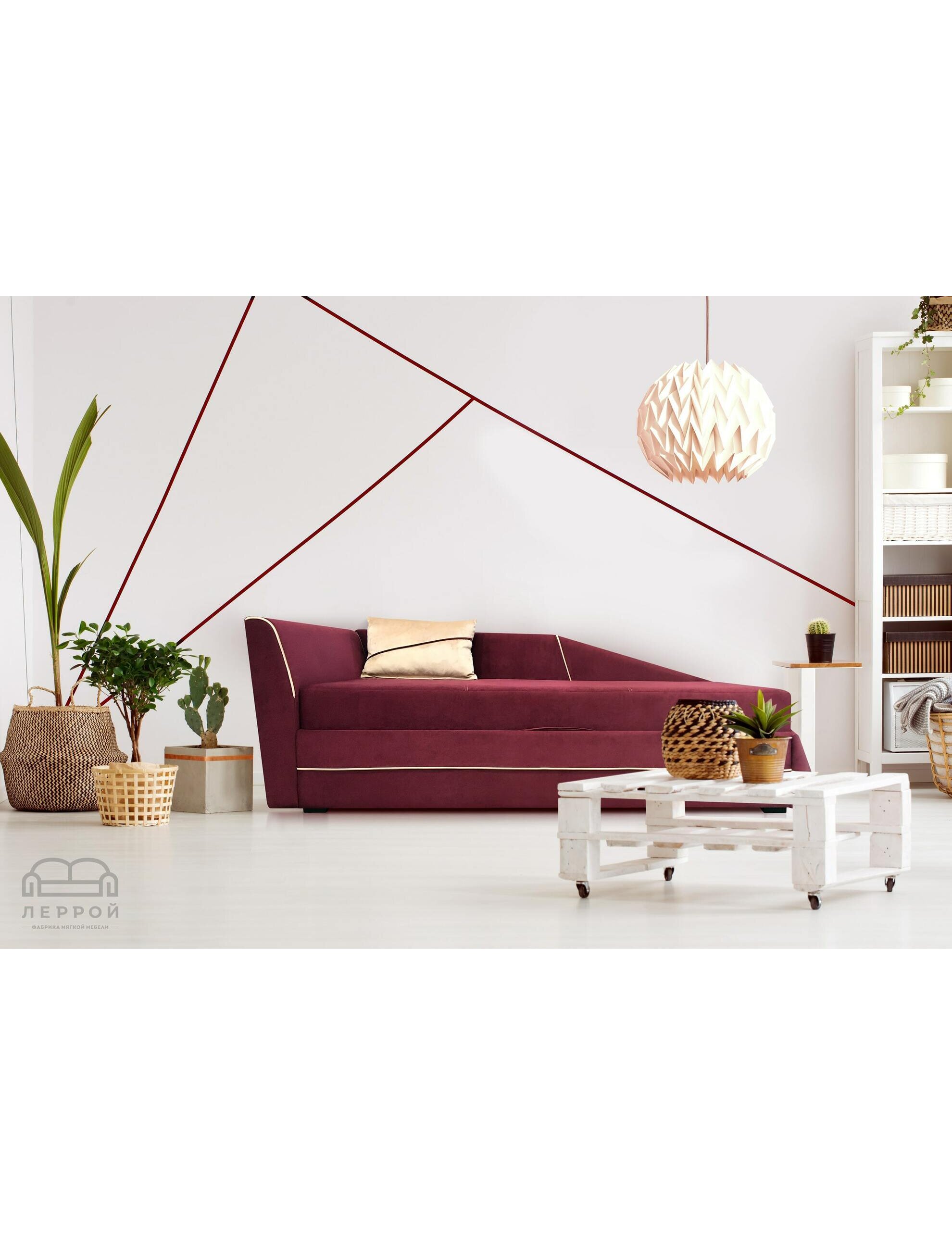 Функциональность и внешний облик тахты "ШЕР" полностью отвечает модным тенденциям в мире мягкой мебели. Ломанные линии в стиле оригами меняют представление о плоскости в пространстве и будут ярким акцентом в вашем интерьере.