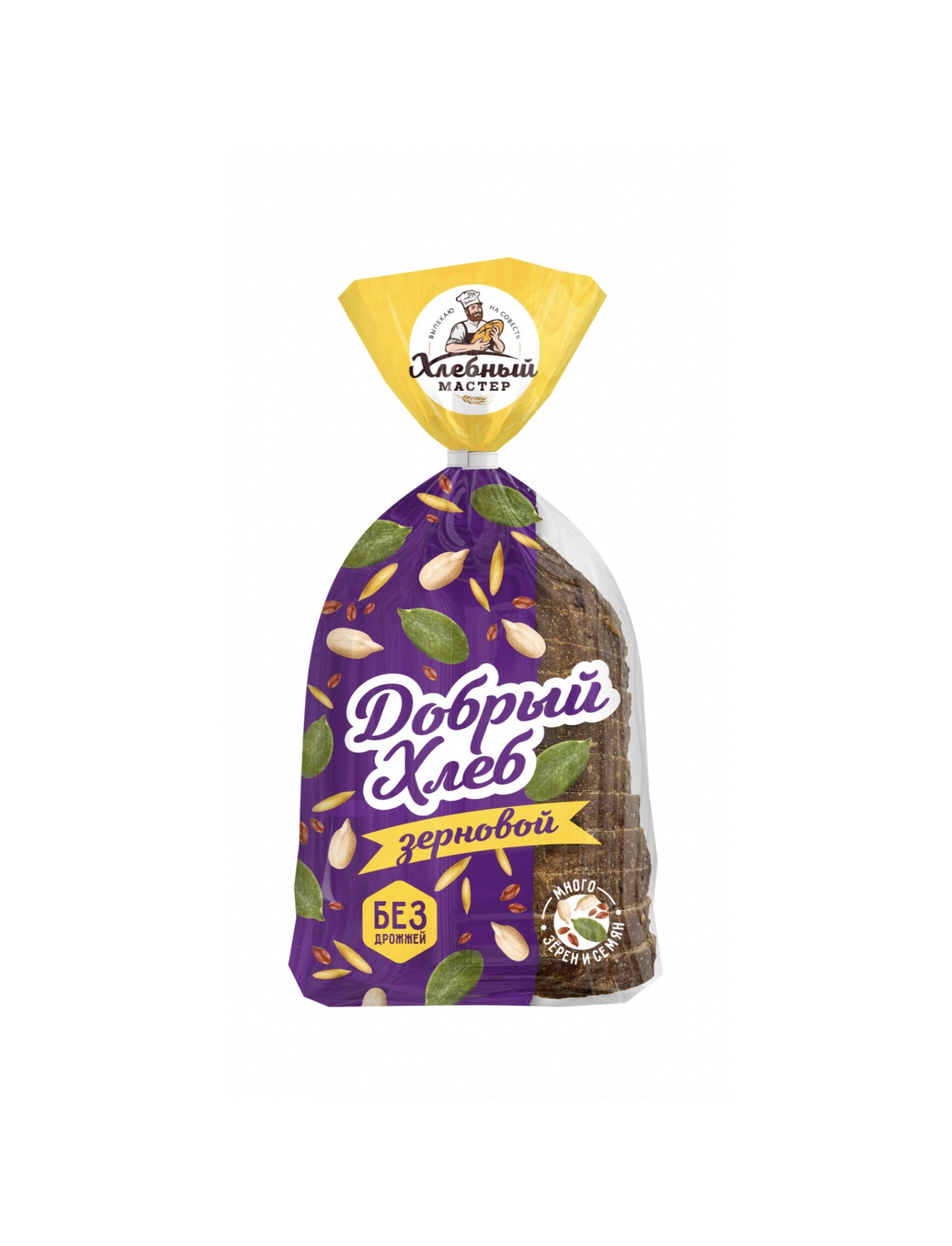 "Добрый хлеб" - это идеальный выбор для тех, кто ценит гармонию вкуса и неоспоримую пользу натуральных ингредиентов. Изготовленный на основе живой ржаной закваски с использованием молочнокислых бактерий и ферментированного солода, этот хлеб обладает удивительно мягкой текстурой и глубоким пикантным ароматом. Главная особенность продукта - его богатый зерновой состав: каждая порция щедро насыщена семенами подсолнечника, льна, тыквы и кунжута, а также содержит пшеничные отруби и овсяные хлопья. Такое обилие злаков не только дарит неповторимые вкусовые ощущения, но и делает хлеб ценным источником клетчатки и энергии. Для удобства потребителя хлеб представлен в виде аккуратной нарезки, что значительно упрощает приготовление полезных завтраков, изысканных сэндвичей или сытных бутербродов. Благодаря качественной рецептуре и натуральному способу брожения, изделие сохраняет свою свежесть и мягкость в течение 7 суток. "Добрый хлеб" зерновой станет незаменимым дополнением к вашему столу, превращая каждый прием пищи в заботу о здоровье.