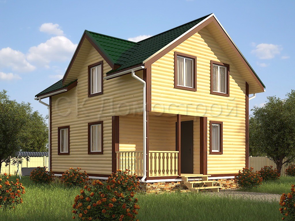 Фундамент: Не входит в стоимость дома, рассчитывается индивидуально, в зависимости от пожеланий Клиента и планировки проекта. Основание: Двойное: первый ряд обрезной брус естественной влажности 100х150 или 100х200 мм, второй ряд обрезной брус 150х150 или 150х200 мм. Половые лаги: Доска естественной влажности 40х150 мм, устанавливаются с шагом не более 0,6 м, черновой пол не изготавливается. Чистовой пол: Не изготавливается Стены 1 этажа: Профилированный брус естественной влажности 140х140 мм или 190х140 мм, в зависимости от выбранной толщины. Между венцами бруса прокладывается льноджутовое волокно. Вид бруса с наружной стороны в двух видах: прямой или овал (на стоимость не влияет). Перегородки 1 этажа: Профилированный брус естественной влажности 100х150 мм. Между венцами бруса прокладывается льноджутовое волокно. Вид бруса: с двух сторон прямой прострожки. Стены 2 этажа: Каркасно-щитовые. Конструируются из доски 150х40 мм с шагом 0,6 м., обшиваются снаружи вагонкой камерной сушки, под которую монтируется пароизоляция. Перегородки 2 этажа: Не устанавливаются. Сборка угла: В стоимость входит сборка в теплый угол. Сборка сруба: Сруб собирается на деревянные нагеля. Утепление: Не производится. Пароизоляция: Прокладывается только на каркасных фронтонах. Высота помещений: 1 этаж 2,3-2,35 м (17 венцов бруса), 2 этаж - 2,3 м, размер устанавливается от балок межэтажного перекрытия до балок перекрытия второго этажа Балки межэтажного перекрытия: Доска естественной влажности 40х150 мм, устанавливаются с шагом не более 0,6 м. Потолки дома: Не подшиваются. Мансарда: Не обшивается. Окна: Не устанавливаются. Двери: Не устанавливаются. Кровля: Волнистые листы ондулин, с возможностью выбора цвета (красный, коричневый, зеленый), укладка паровлагоизоляции. Стропила и обрешетка: Стропила изготавливаются из доски 40х150 мм, с шагом не более 0,6 м; обрешетка из обрезной доски, толщиной 20-25 мм. Лестница: Не изготавливается. Внутренняя и наружная отделка: Выполняется оцинкованными гвоздями. Углы и поднебесники: Исполняются из вагонки хвойных пород дерева, толщиной 12-18 мм. Фронтоны: Каркасно-щитовые. Изготавливаются из доски 40х150 мм, обшиваются вагонкой хвойных пород дерева, толщиной 12-18 мм, принудительной сушки (влажность 20-22%), с прокладкой ветрозащитной пленки.