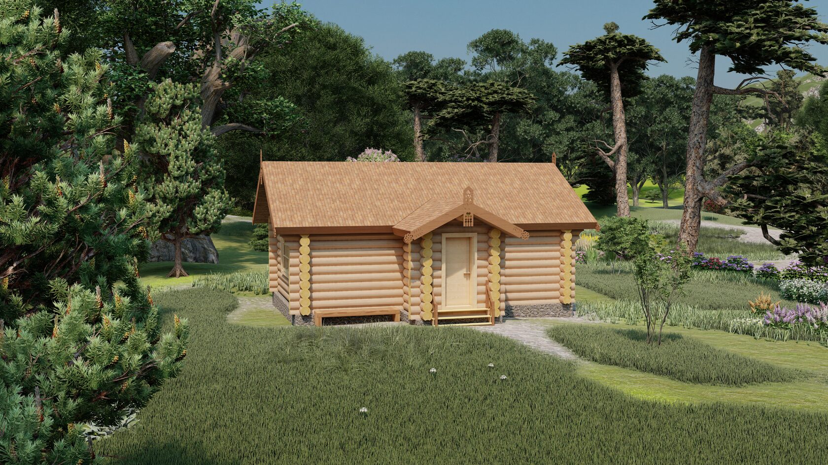 Охотничий домик в лесной местности