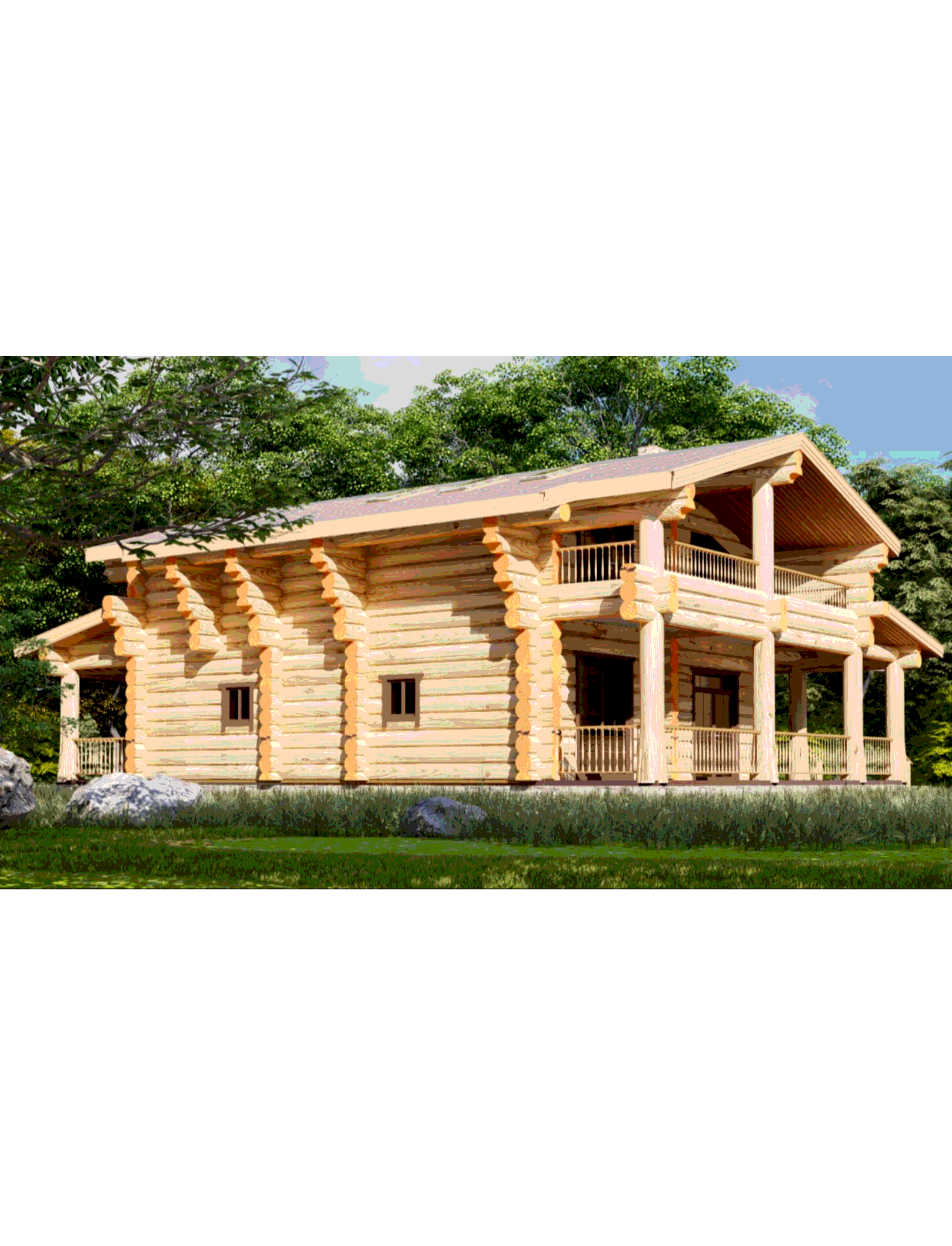 Дизайн дома объединяет в себе традиционную русскую рубку с современными тенденциями post&beam. Особенность этого проекта, просторная терраса с трех сторон дома.