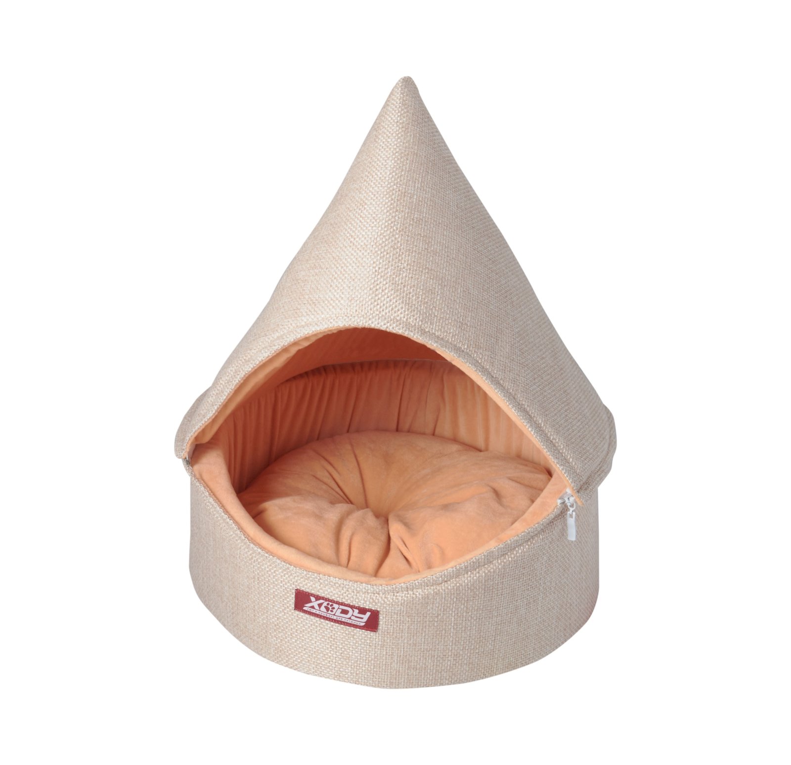 Домик-лежак со съемной крышей. Если питомцу не нравится закрытые домики, то крышу можно снять- она на молнии. Снаружи прочная рогожка, а внутри мягкий плюшевый мех.