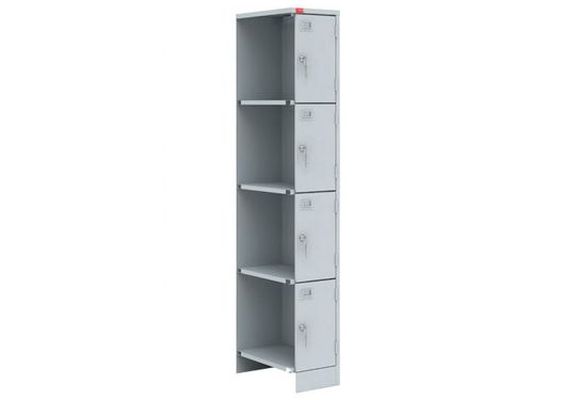 Дополнительная секция шкафа металлического ШРМ-14-М предназначена для хранения одежды в производственных, спортивных и других помещениях, а также для организации камер хранения в магазинах и супермаркетах. - промежуточная секция модульного ряда состоит из четырёх отделений; - комплектуется четырьмя врезными ключевыми замками; - промежуточная секция модульного ряда добавляется к основной секции Шкафа металлического ШРМ-14 (начало модульного ряда) и состыковывается с основной конструкцией. Этот фактор позволяет перейти к модульной системе планирования, одним из главных достоинств которой является большая устойчивость всей конструкции по сравнению с унитарными моделями. Дополнительные секции (дс) поставляются без левой стенки, т.к. имеют общую боковую стенку с соседней секцией, а количество дополнительных секций может быть неограниченно; - собирается при помощи винтов и саморезов, поставляется в разобранном виде, упакованная в гофрокартон.