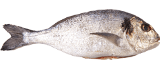 Дорада («золотистая», от d’oro – золото) – крупный морской лещ, обитающий в теплых и умеренных соленых морях по всему миру. Характерныe особенности: золотое пятно в виде полумесяца между глаз, темное пятно над жабрами, темно-серая окраска спины, переходящая к брюшку в серебристо-серую, а также толстые и мясистые боковые части рыбы.